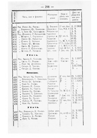 о ЧинЪ; име и фамилия дение убитъ или или уми